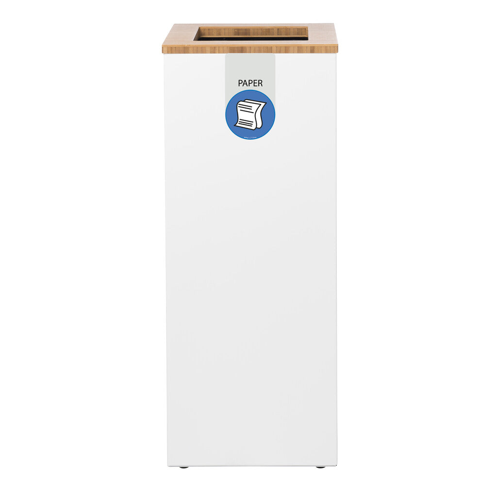 Afvalinzamelingsunit van gegalvaniseerd staal met stijlvolle en duurzame bamboe open top met gekleurde fractieaanduiding en label. Makkelijk te legen. Modulair en koppelbaar. Doordat de elementen gekoppeld worden middels magneten kunnen de afvalbakken in de lengte maar ook als cluster gekoppeld worden. Dit maakt de Paxa zeer flexibel en een ideale afvalscheidingsoplossing op elke locatie.