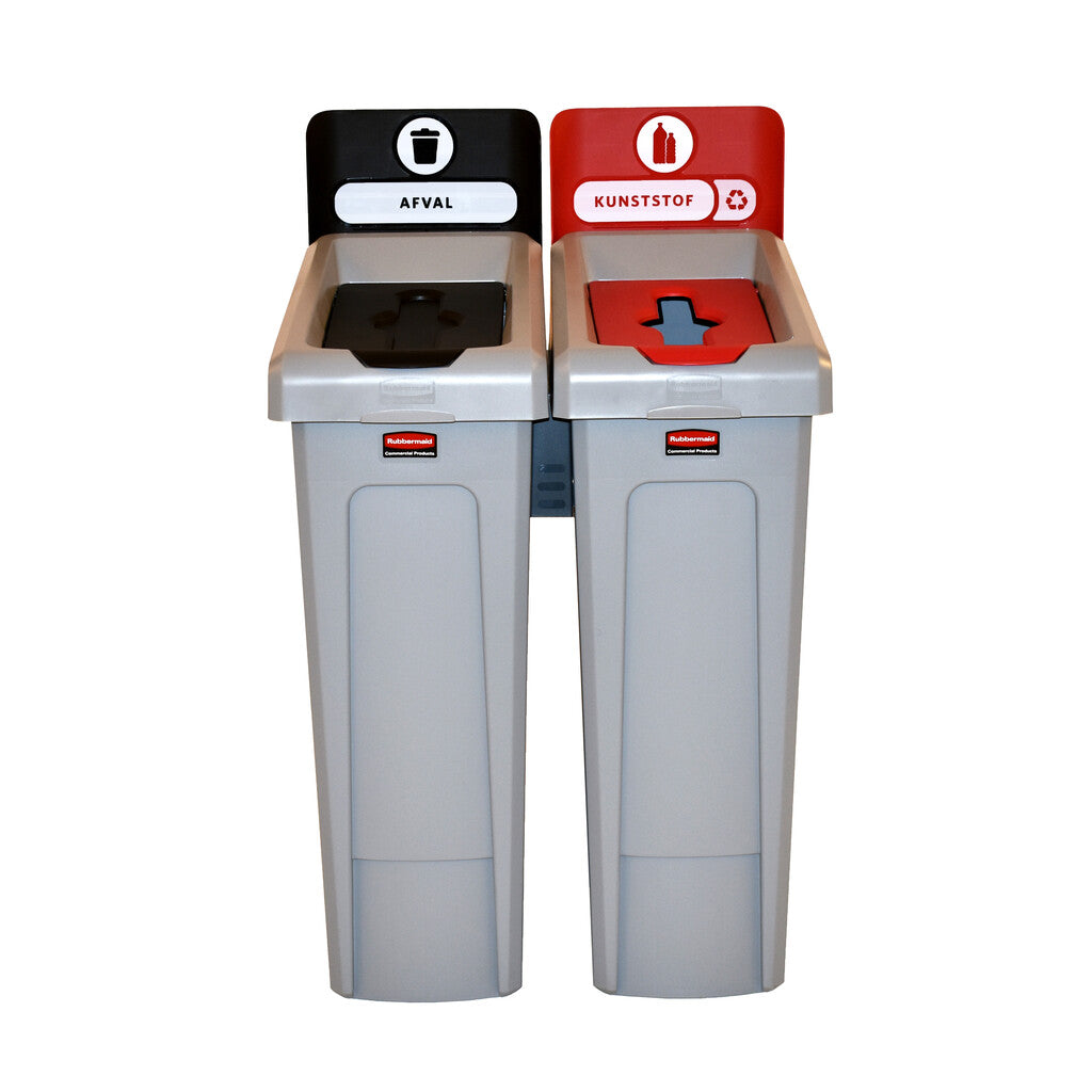 Slim Jim Recyclingstation 2-stroom NL deksel gesloten ()/flessen () | Rubbermaid | Afvalscheiding | Grijs/Rood/Zwart
