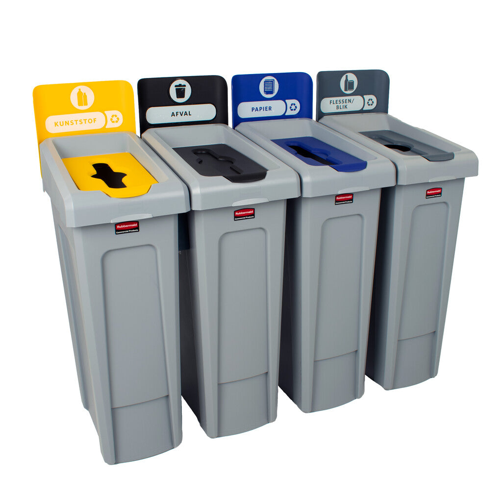 Slim Jim Recyclingstation Fles/Blik Inwerpopening | Rubbermaid | Afvalscheiding | Grijs