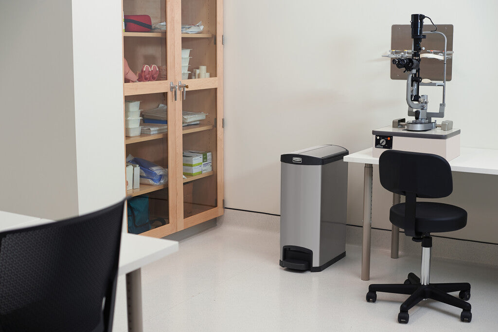 De Step On-containers maken maximaal gebruik van de beschikbare ruimte dankzij een slank, discreet ontwerp. Het langwerpige model met pedaal aan de smalle zijde is uitermate geschikt voor smalle ruimten. Het deksel opent in twee delen waardoor het ook gemakkelijk onder werkbladen past. De RVS container heeft kunststof accenten en is voorzien van een geruisloos sluitend deksel en binnenbak. Het pedaal van industriële kwaliteit garandeert een lange levensduur.
