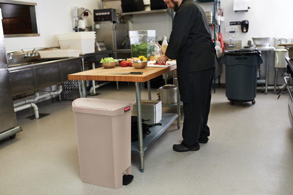 Slim Jim Step On container End Step kunststof 50L | Rubbermaid | Soft-close | Beige