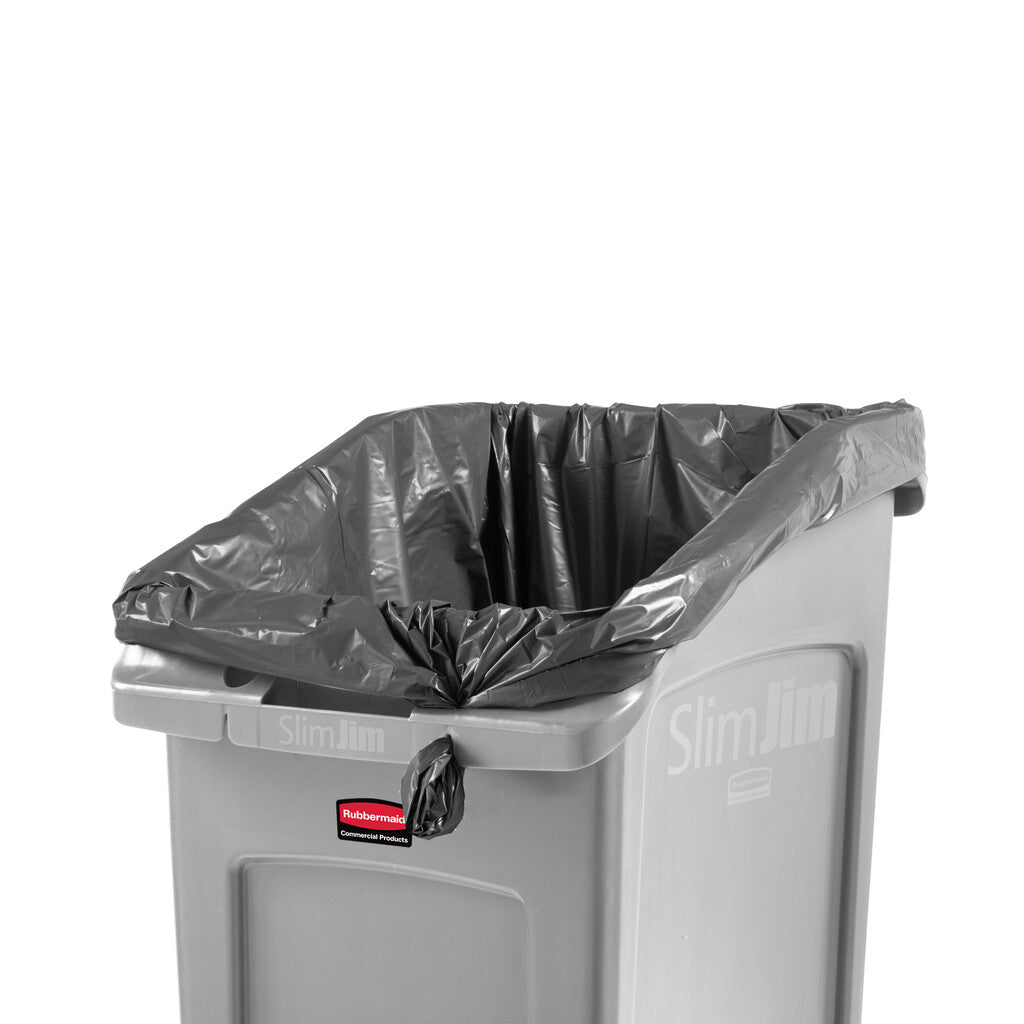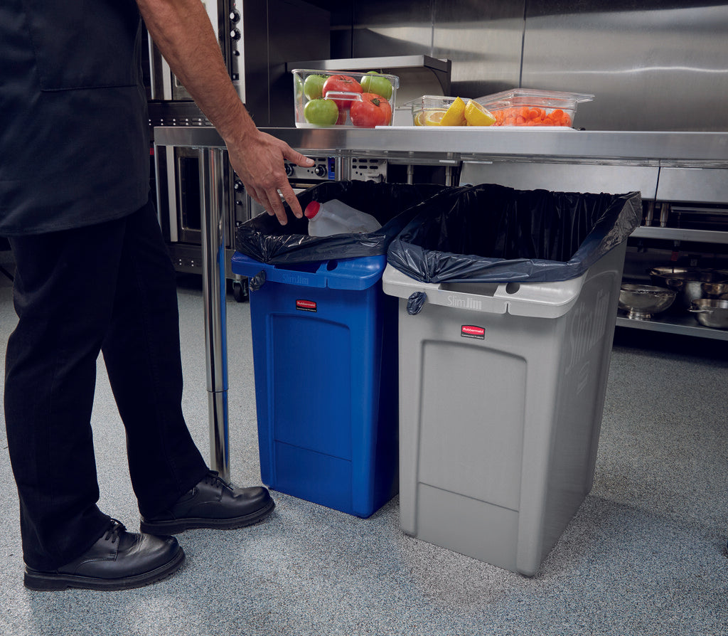 Zeer sterke en praktische container van hoogwaardig polyethyleen. De grote schuine opening biedt onder een toonbank 2x meer toegang dan de traditionele Slim Jim containers. Hierdoor hoeft de container niet meer onder de toonbank vandaan te worden getrokken, wat de productiviteit van de gebruiker verhoogd. Met geïntegreerde luchtsleuven waardoor minder trekkracht nodig is om de afvalzak te verwijderen. Vier doortrekopeningen en treksluitingen zorgen voor een snelle en eenvoudige bevestiging van de afvalzak, zonder knopen te hoeven leggen. Handgrepen aan de basis en de rand verbeteren de grip en maken heffen en legen eenvoudiger. Kortom, een doeltreffende oplossing onder een balie of werkbank.