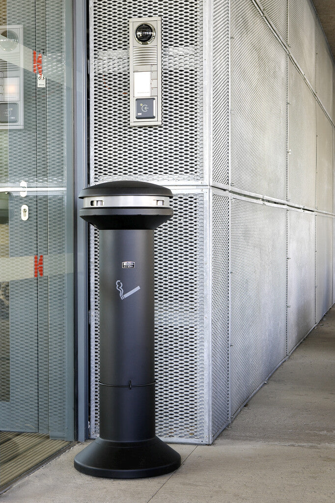 Robuuste, design asbak voor circa 8000 sigaretten. Afsluitbaar (exclusief slot).