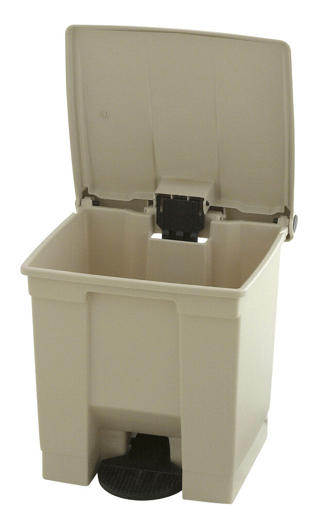 Robuuste container van polyethyleen met stil pedaal voor intensief gebruik. Deze sterke, lek-vaste pedaalemmer uit kunststof roest, deukt, splintert en schilfert niet. Ideaal om afval weg te gooien zonder het deksel te hoeven aanraken. Het strak sluitende, overlappende deksel houdt geurtjes binnen. De container heeft afgeronde hoeken en gladde oppervlakken voor een eenvoudige reiniging en desinfectering. Conform HACCP-richtlijnen.