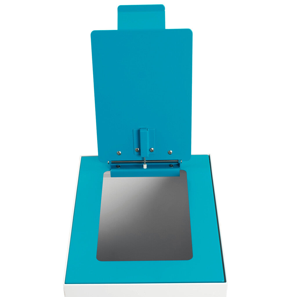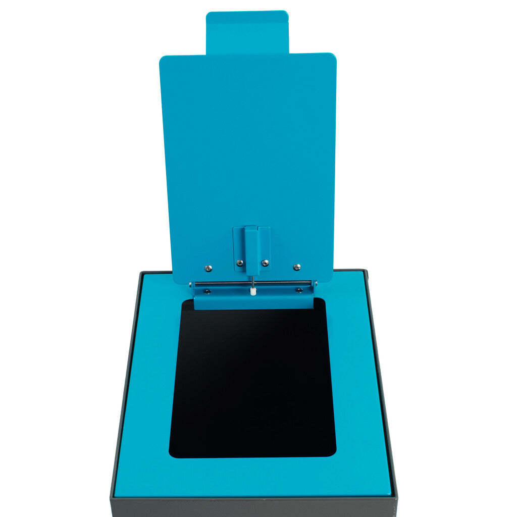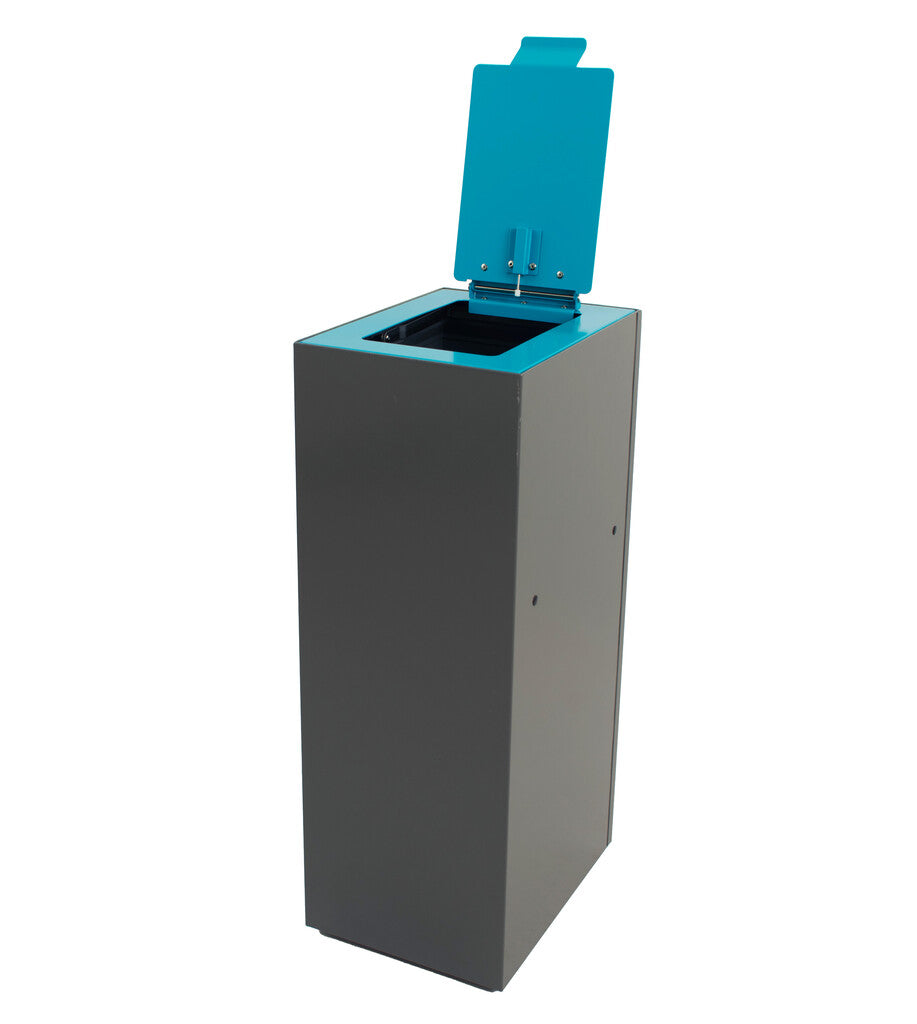 Degelijke top met klepdeksel van gepoedercoat staal om de modulaire afvalscheidingsunit af te sluiten. Hierdoor wordt het afval uit het zicht onttrokken en nare geurtjes buiten de unit voorkomen. Het klepdeksel is voorzien van een dempingsysteem waardoor de klep geruisloos sluit. De top valt mooi in de unit waardoor een strak afvalscheidingsstation gecreëerd kan worden.
