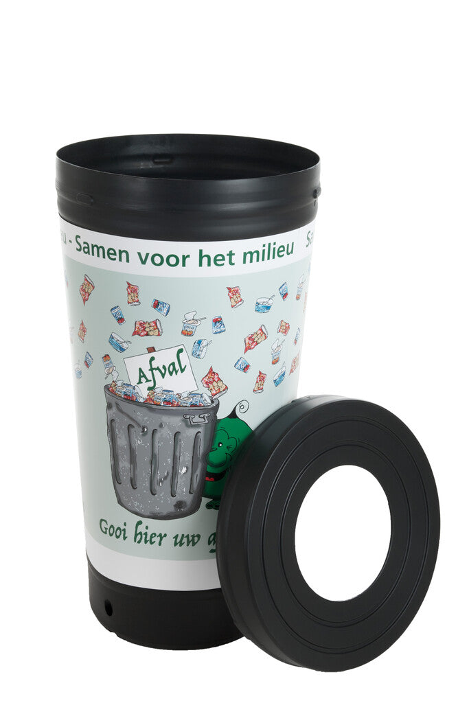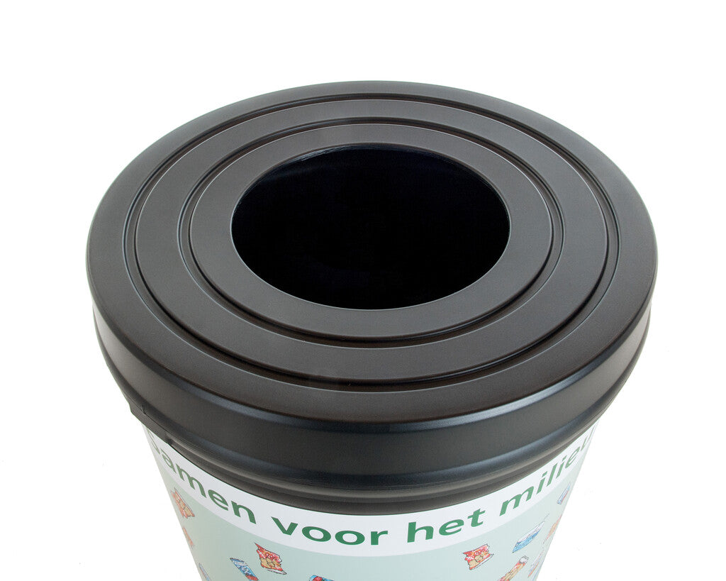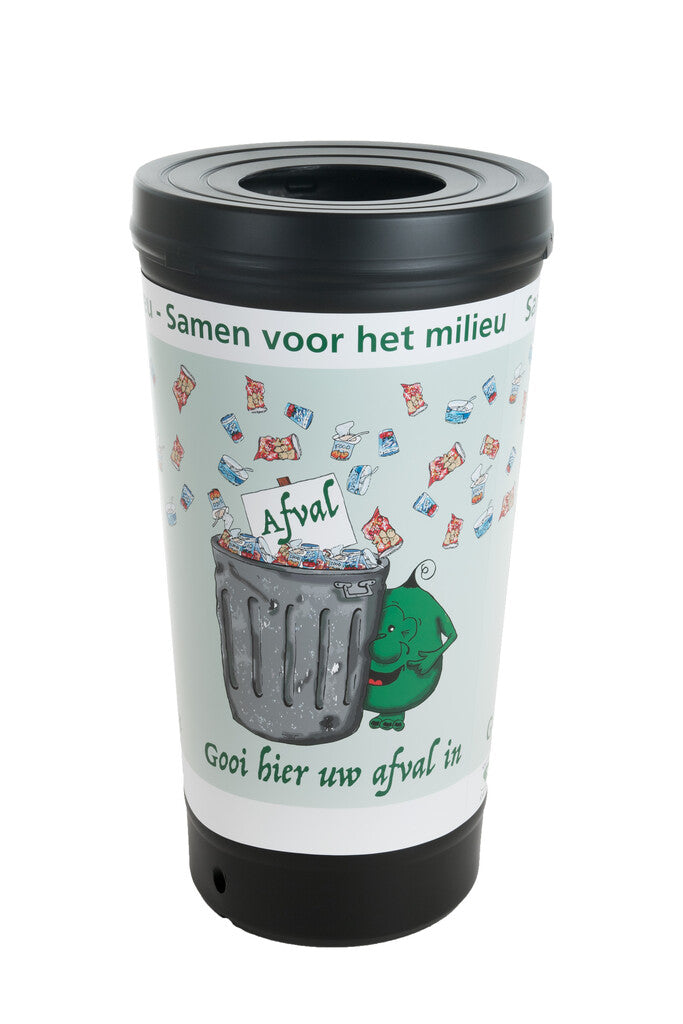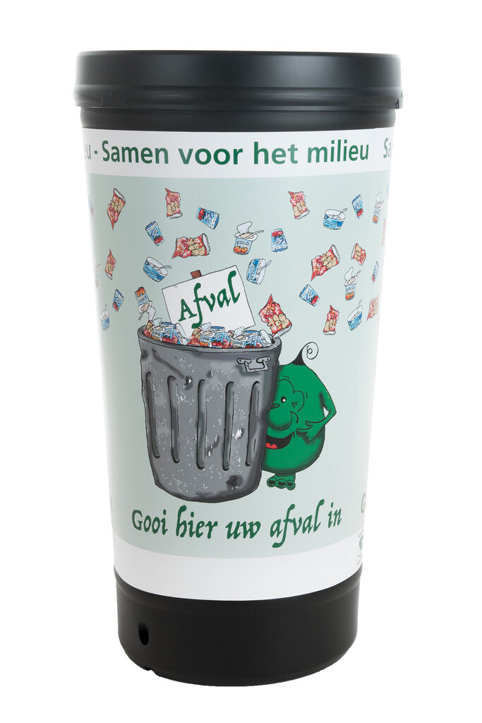 Grootvolume afvalbak van hoogwaardig kunststof voor het inzamelen van (rest)afval. Bijpassende afvalzakken houden de binnenkant schoon en het deksel zorgt ervoor dat de afvalzak netjes op zijn plaats en uit het zicht is. Wikkel apart leverbaar, vanaf 5 stuks te personaliseren. Een ideale oplossing voor evenementen, festivals, horeca, attractieparken en sportverenigingen. In geval van buitengebruik is het raadzaam de TRASHman te verzwaren.