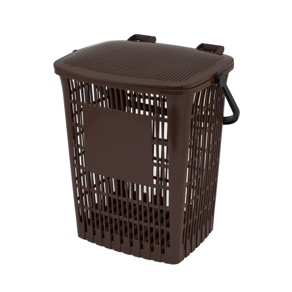 Circulaire afvalemmer van gerecycled kunststof met scharnierend deksel, ideaal voor GFT-afval. Het hengsel maakt het verplaatsen makkelijk en dient tevens als vergrendeling. De afvalemmer is rondom voorzien van ventilatieopeningen.
