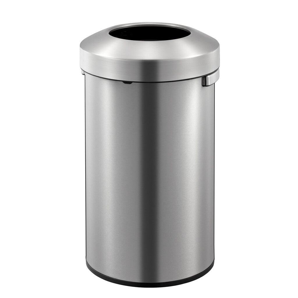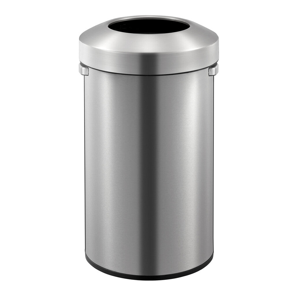 Stijlvolle open top afvalbak van geborsteld RVS met fingerprint proof coating. Voorzien van een ruime opening, handige handvatten en een kunststof onderzijde die de vloer beschermd. De basis beschikt over een opening om de afvalzak te klemmen. De top heeft een kunststof binnenring die hygiënisch aansluit op de afvalzak/-bak.