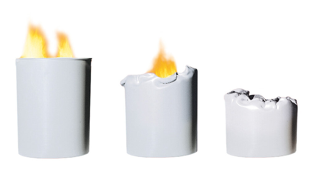 Ronde papierbak vervaardigd van vlamwerend kunststof en voorzien van aluminium inzet.