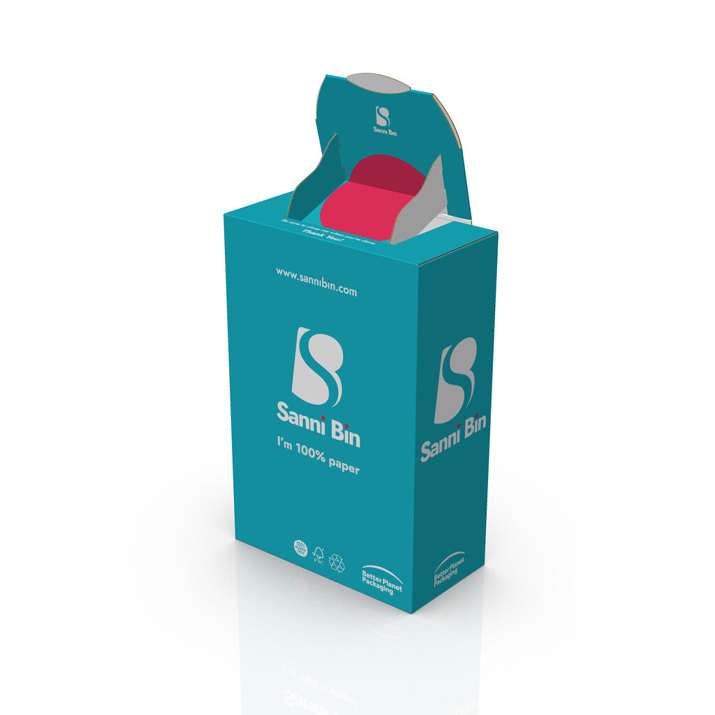 De Sanni Bin is vervaardigd uit 100% biologisch afbreekbaar karton, waarvan 70% gerecycled en 30% FSC-gecertificeerd materiaal. Deze duurzame hygiënebak is vochtbestendig, slijtvast en remt microbiële groei met 99,9% effectiviteit.