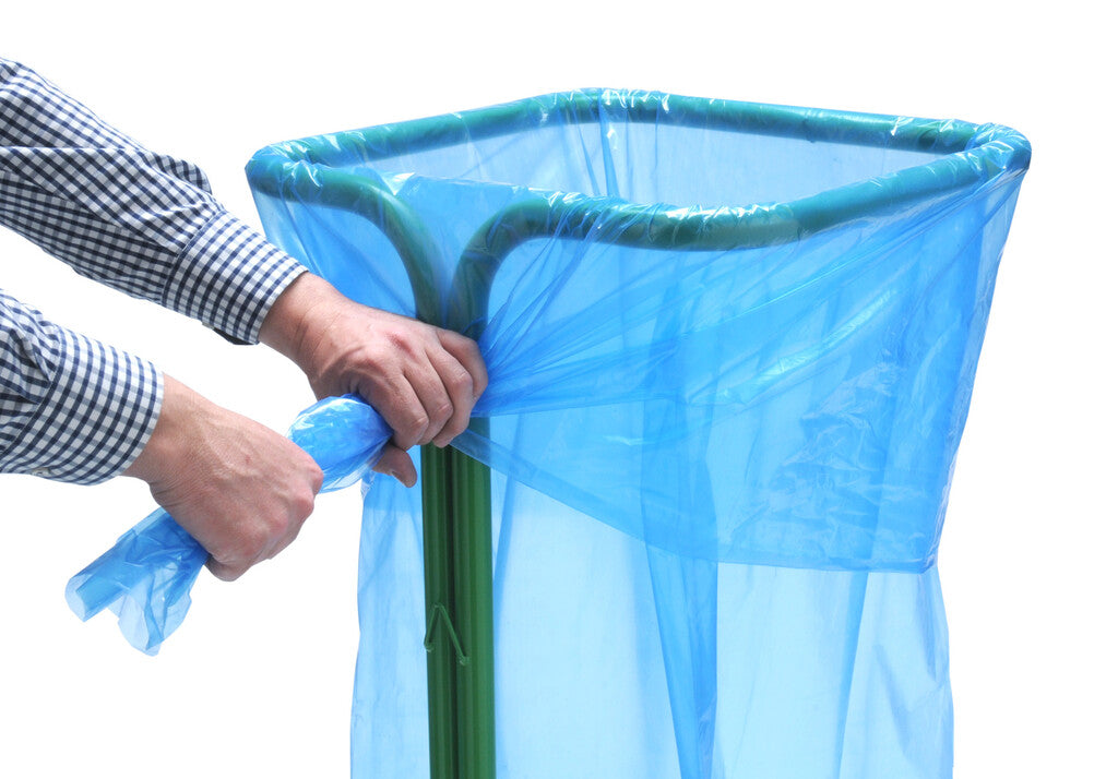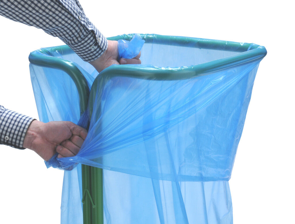 Metalen buisframe voor het inzamelen van folies, kunststoffen of EPS. Uniek zelfklemmend systeem waardoor de afvalzak blijft zitten zonder gebruik te hoeven maken van losse klemmen of clips.